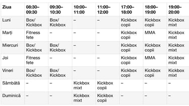 Ne propunem să inspirăm și să educăm prin sport, oferind antrenamente de calitate și un mediu motivant.